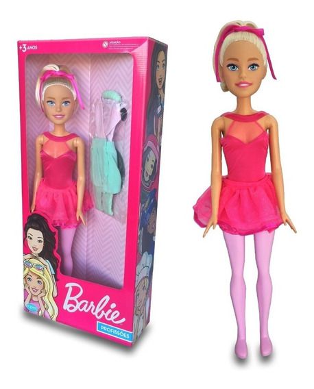 Dance com sua Barbie Bailarina! Fashion com 65cm de altura, longos cabelos loiros. Ela é toda articulada, ou seja, você pode movimentar a cabeça, braços e pernas na hora da dança. Acompanha outro lindo conjunto de roupas para ballet com meias curtas e lacinho. Seu cabelo é todo fashion com laços cor de rosa, e você pode fazer vários penteados de ballet na sua Barbie! Divirta-se em qualquer lugar com sua Barbie Bailarina.