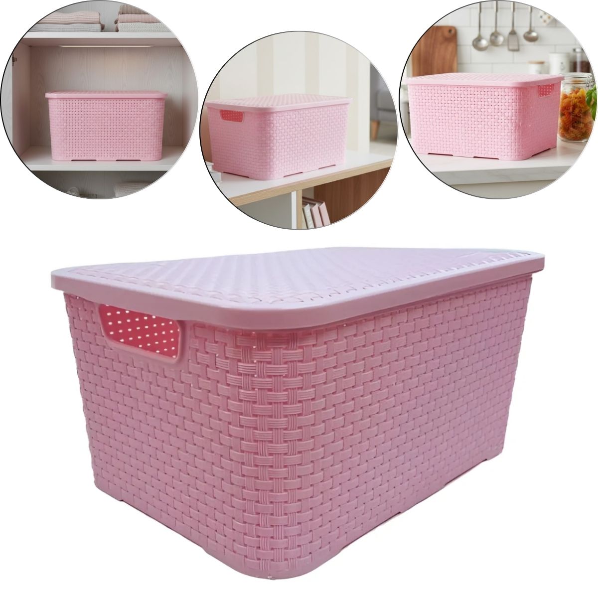 Caixa Organizadora Rattan com Tampa 7 Litros – Rosa