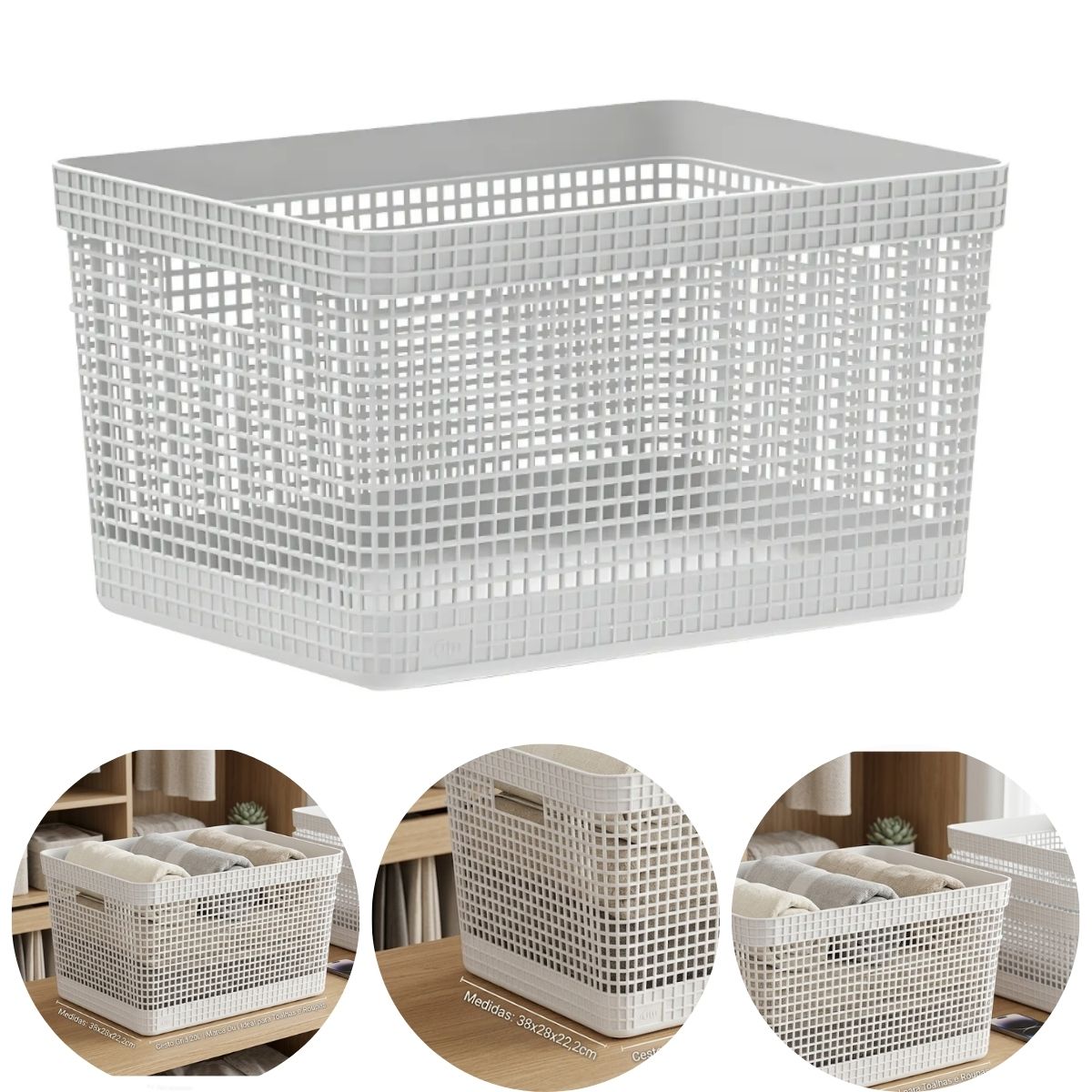 Cesto Organizador Grid 20 Litros A linha de Cestos Grid foi desenvolvida com um mix perfeito entre conforto, design e funcionalidade. Os cestos possuem diversos tamanhos, são empilháveis e versáteis. São diversas opções com cores neutras e acabamento fosco, que combinam com qualquer ambiente. Podem ser utilizados em closets, cozinhas, lavanderias ou até mesmo na sala de estar para decorar. Design minimalista, cores neutras, acabamento fosco, três elementos essenciais para a sofisticação. Produzido de plástico 100% pós-consumo, proveniente de resíduos coletados do litoral brasileiro, com o objetivo de evitar que esse plástico chegue ao mar ou rios da região. O Cesto Organizador Grid possui medidas de (38cm-profundidade x 28cm-largura x 22,2cm-altura) e a capacidade de 20 litros. Os Cestos Grid são perfeitos para aliar organização e decoração na sua casa. -Cuidados Sugere-se higienizar com sabão neutro e esponja macia, evitando produtos abrasivos no processo de limpeza. Medidas: Altura: 22.2cm Largura: 28cm Profundidade: 38cm Peso: 496g Modelo: Cesto Grid Marca: Ou