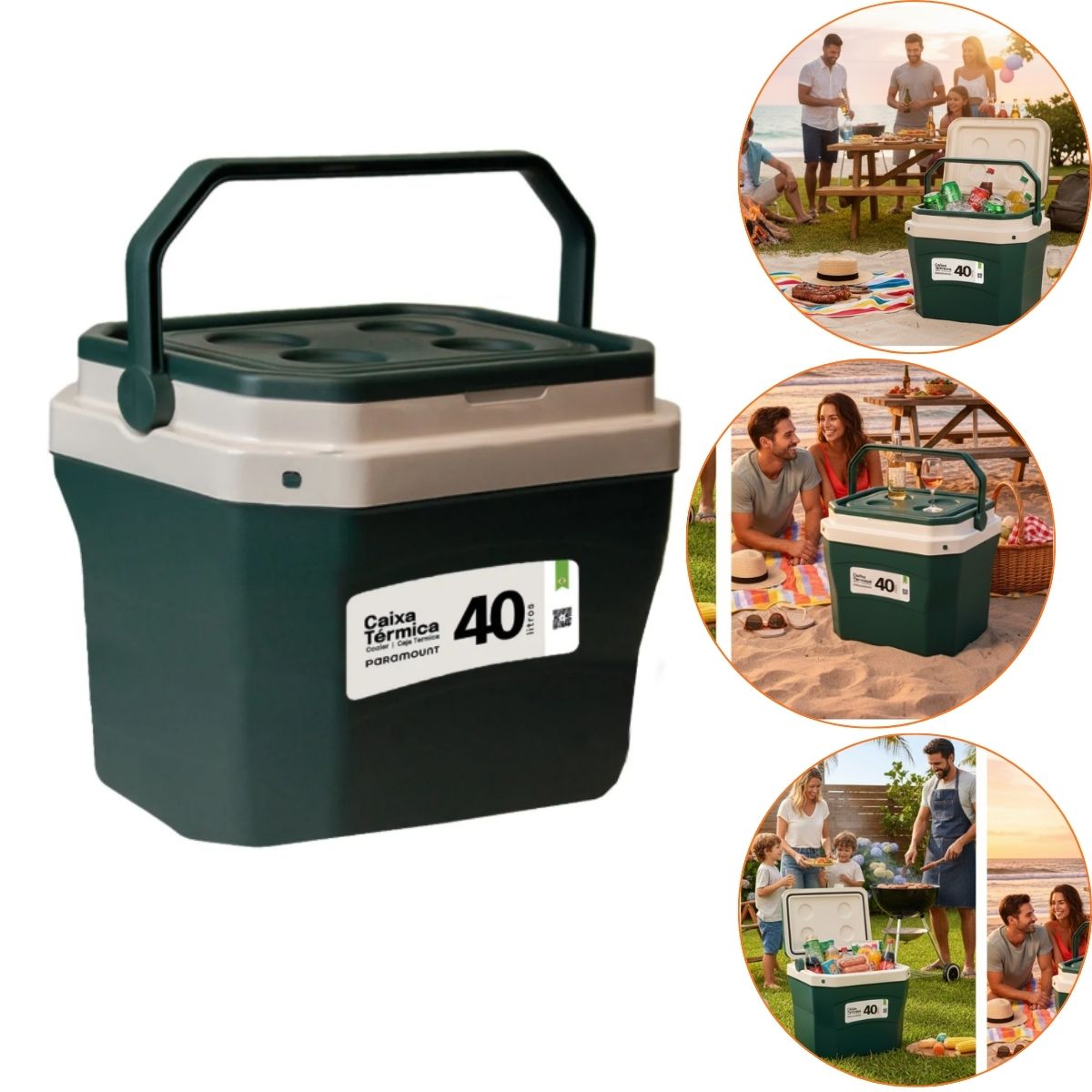 A Caixa Térmica 40 Litros é ideal para manter bebidas e alimentos conservados por mais tempo em passeios, viagens, praia, camping ou eventos. Com excelente capacidade interna, comporta garrafas, latas e alimentos com praticidade, sendo uma ótima escolha tanto para uso doméstico quanto profissional.