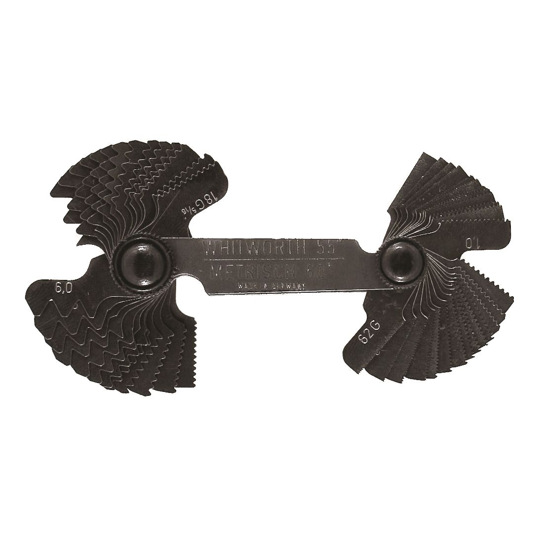 - Marca: (Spion)- Origem: Alemanha- Medição:- Sistema Métrico (60 Graus):0,25 - 0,3- 0,35 - 0,4 - 0,45 - 0,5 - 0,6 - 0,7 - 0,75 - 0,8 - 0,91,0 - 1,25 - 1,5 - 1,75 - 2,0 2,5 - 3,0 - 3,5 - 4,0 - 4,5 - 5,0 - 5,5 - 6- Sistema Withworth (55 Graus):62g - 60g - 48g - 40g - 36g - 32g - 30g - 28g - 26g - 25g24g - 22g - 20g - 19g 18g - 16g - 14g - 13g - 12g - 11g10g - 9g - 8g - 7g - 6g 5g - 4.1/2g - 4g- Peso: 76 Gramas
