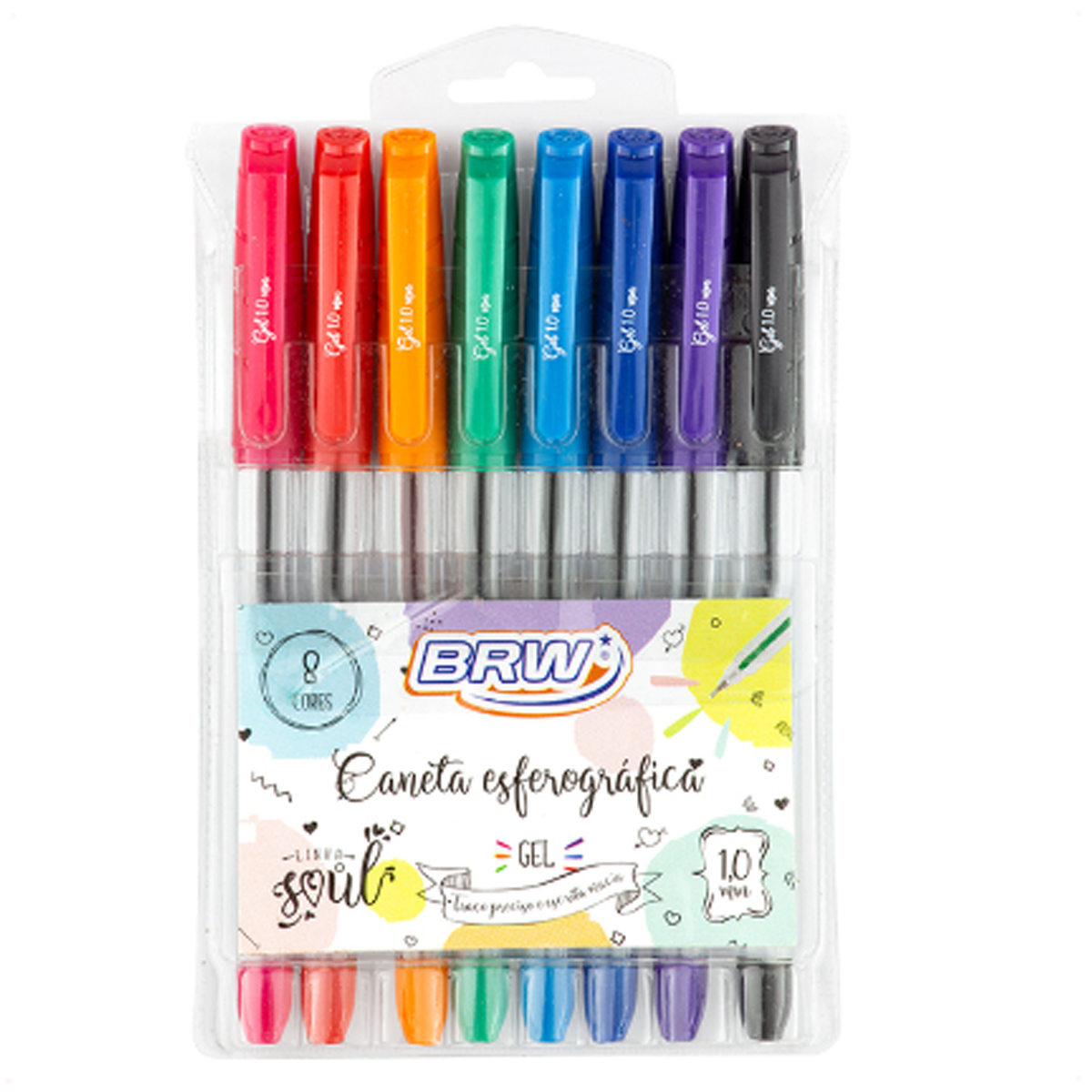 Caneta Esferográfica Gel 1.0mm Blister Com 8 Unidades