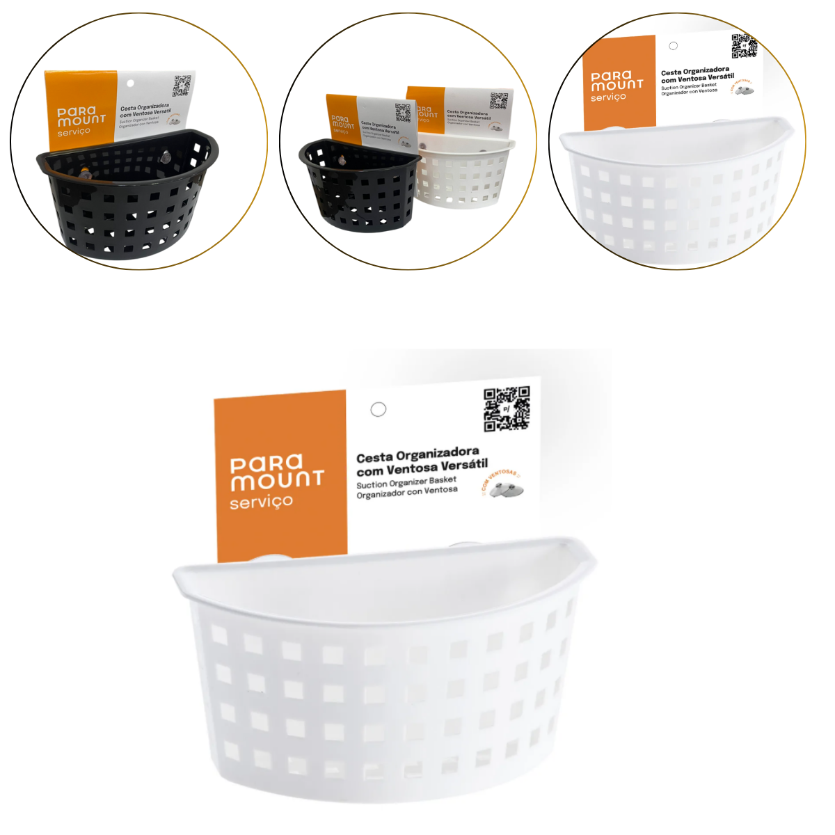 Mantenha seus ambientes sempre organizados com a Cesta Organizadora com Ventosa. Compacta, leve e prática, é ideal para banheiros, cozinhas, lavanderias e outros espaços, permitindo armazenar produtos de higiene, temperos, utensílios e pequenos objetos.