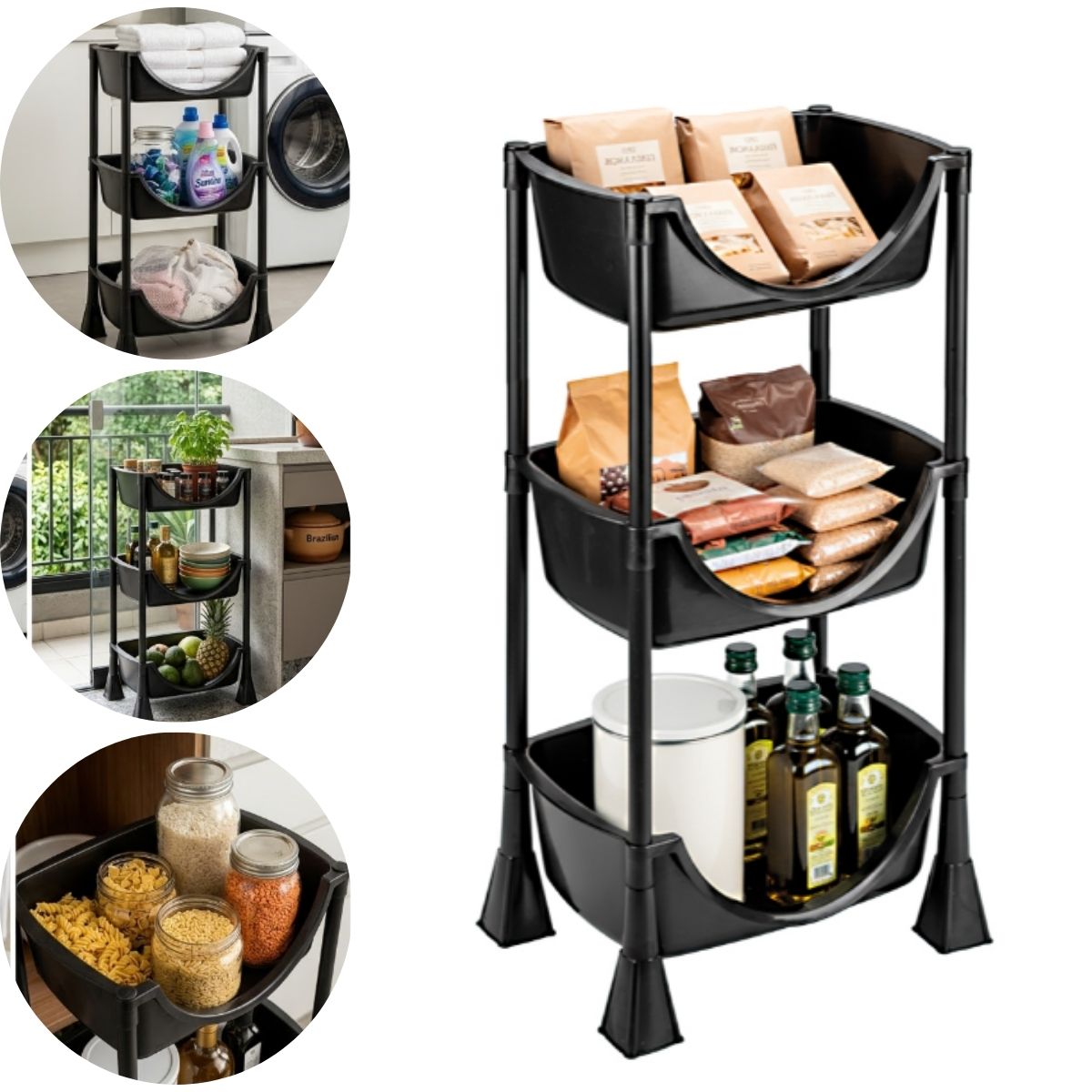 Suas três prateleiras permitem armazenar frutas, legumes, verduras ou outros itens do dia a dia de forma prática e bem distribuída. Além de funcional, seu design versátil combina facilmente com diferentes ambientes da casa.