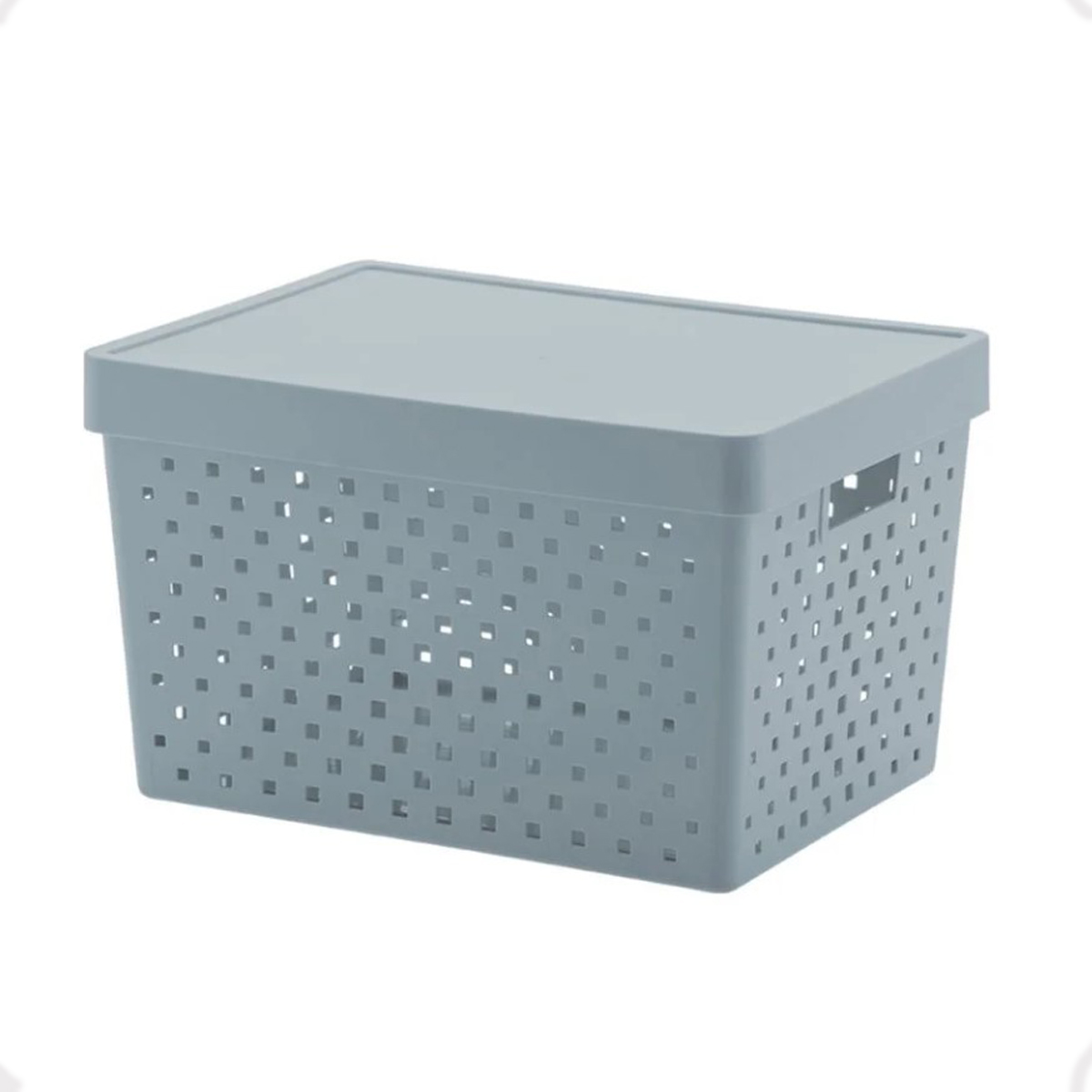 A caixa possui tampa para proteger seus pertences e pode ser empilhadas.
