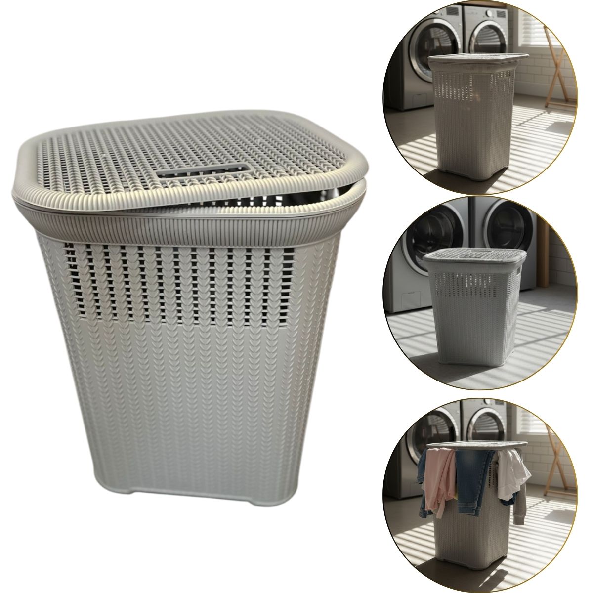 Sua capacidade de 50 litros oferece amplo espaço interno, enquanto a tampa removível mantém o conteúdo protegido e garante um visual sempre discreto e harmonioso. Fabricado em polipropileno resistente, o cesto é leve, durável e fácil de higienizar, ideal para o uso diário.