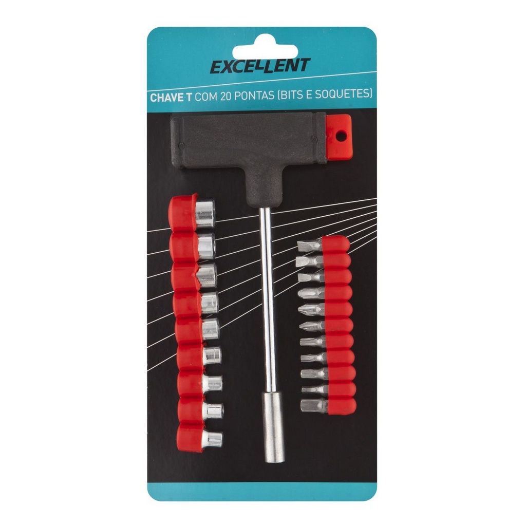 Kit Chave T Com 11 Bits E 9 Soquetes Pontas Phillips e Fenda 8VC Excellent