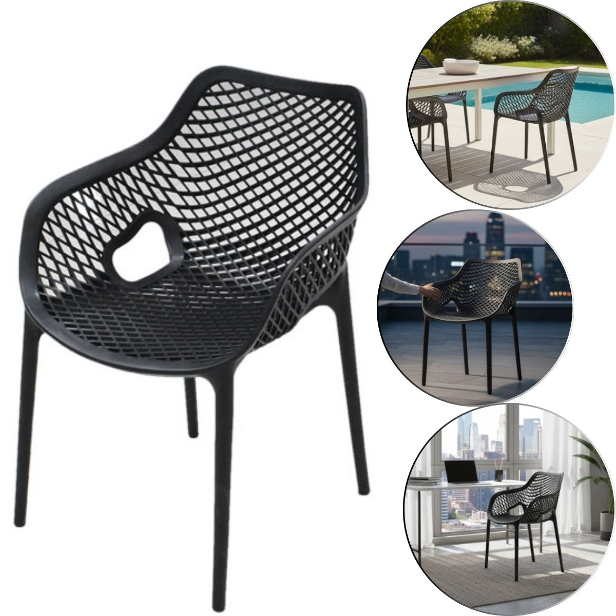 A Poltrona Mosaico Preta é ideal para quem busca conforto aliado a um design versátil e funcional. Com visual moderno e discreto, ela se adapta facilmente a ambientes internos e externos, sendo uma ótima escolha para salas, varandas, áreas gourmet, bares ou espaços comerciais.