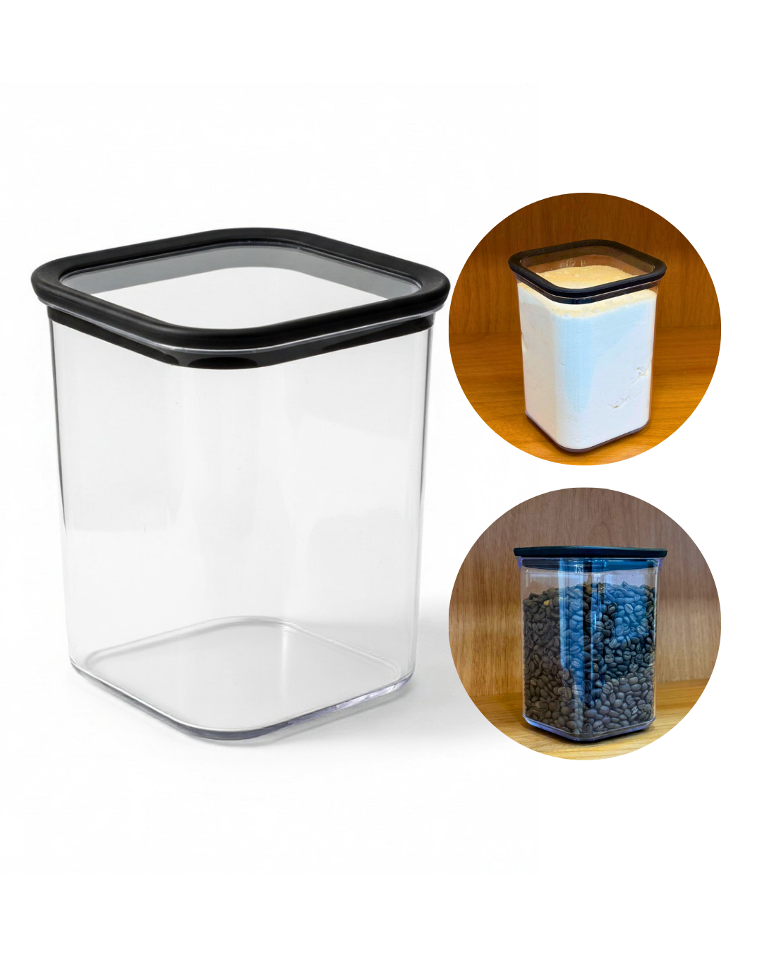 Tampa hermética em borracha termoplástica bloqueia odores e umidade, material em poliestireno seguro para alimentos.