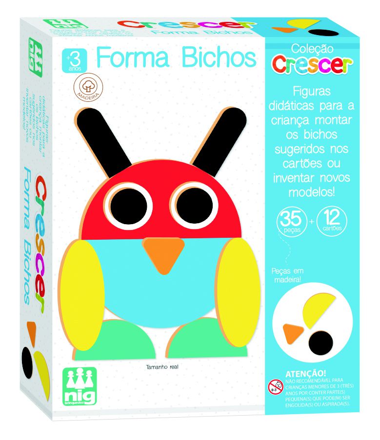 Acompanha 12 cartões explicando as peças que devem ser usadas para formar cada bicho.