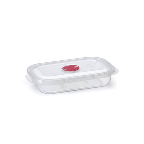 Pote transparente com tampa e trava Nitron, ele armazena sua comida e impede o vazamento do conteúdo.